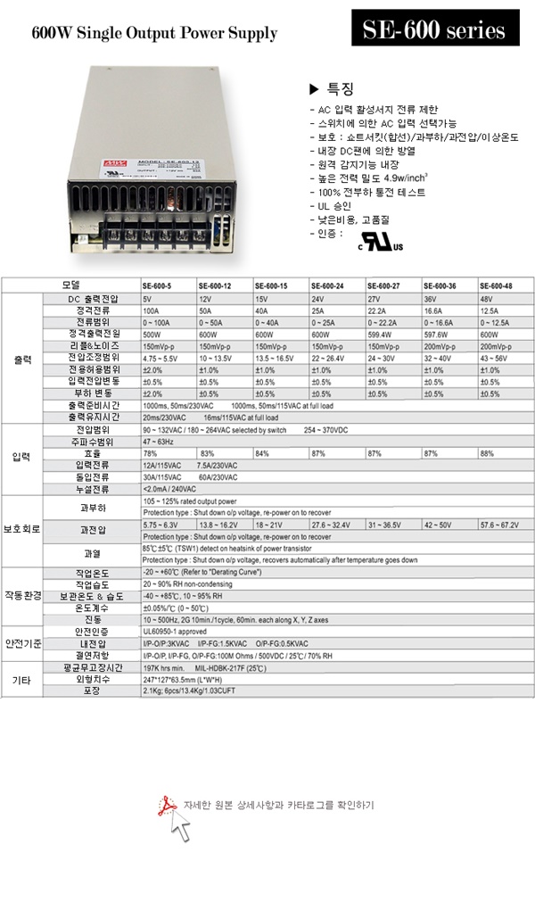 민웰 정품 AC/DC SMPS SE-600시리즈 판매합니다.. |