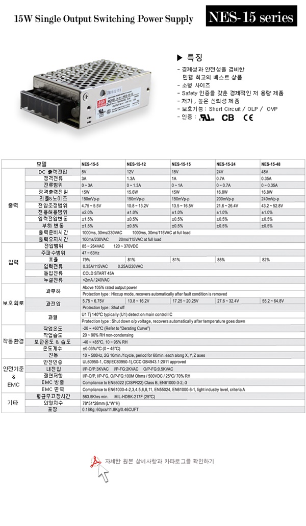 32195 2015-04-10 판매 AC/DC 파워서플라이(민웰) SMPS NES-15시리즈 판매합니다 주연TNS 인기제품인기제품