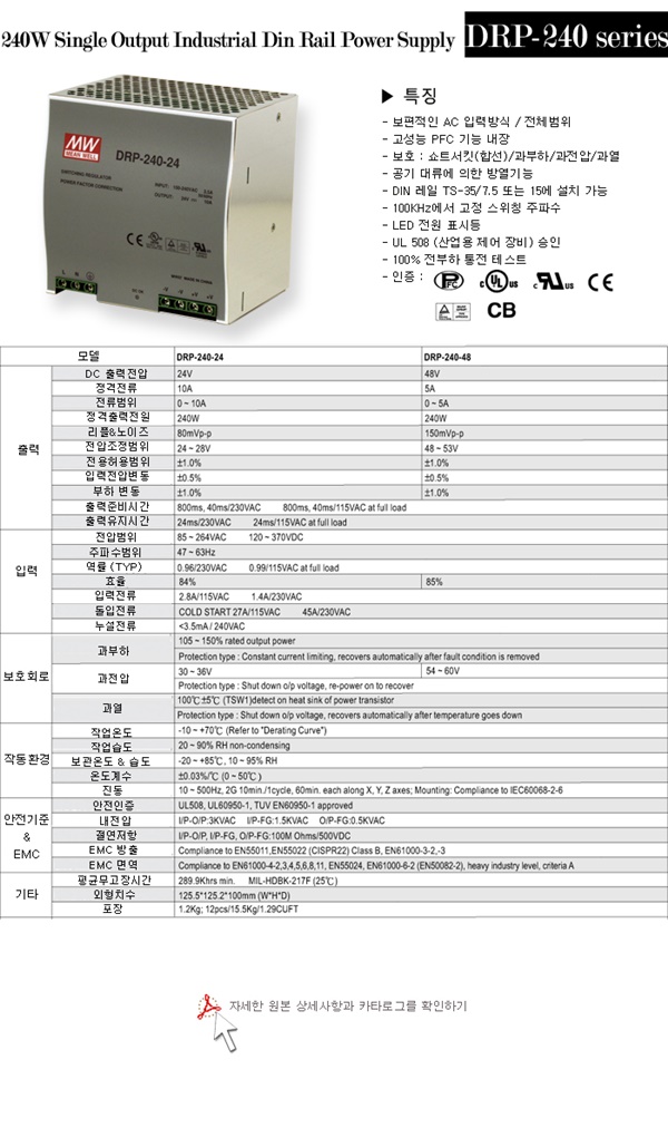 AC/DC 파워서플라이(민웰) SMPS DRP-240-24시리즈 판매합니다.. |