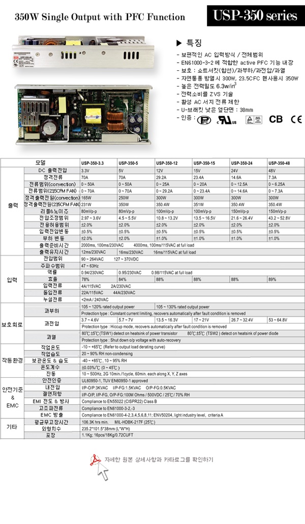 SMPS AC/DC 파워서플라이 USP-350 시리즈 판매합니다. |