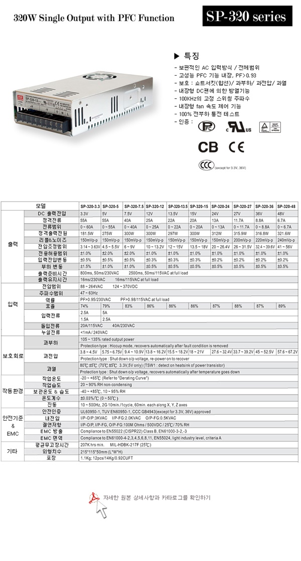 AC/DC 파워서플라이(민웰) SP-320시리즈 판매합니다. |